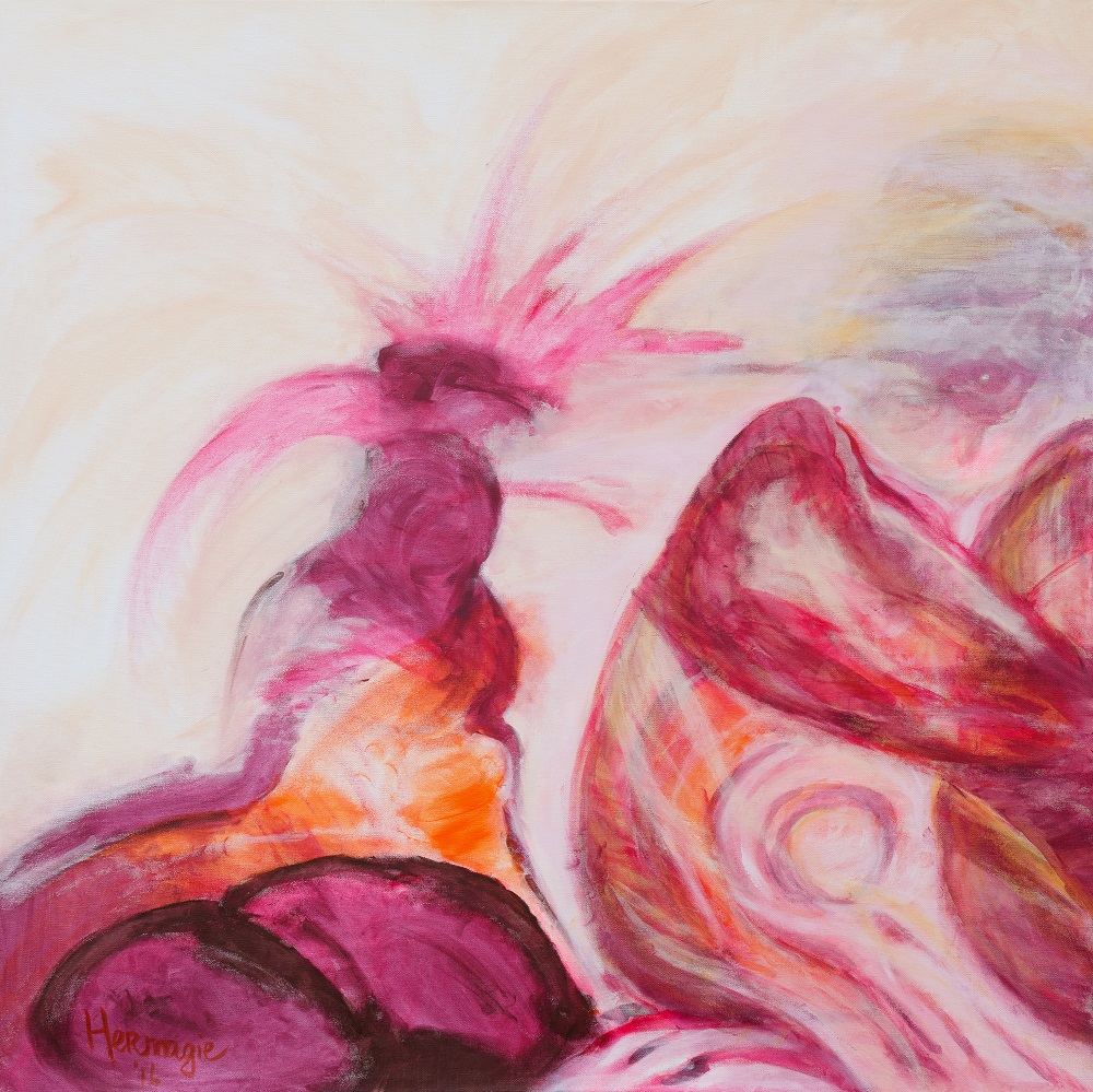 Terwijl jij de verf op het doek aanbrengt, kon ik tegelijkertijd de penceelstreken en de kleuren in mij voelen en zien. En dat terwijl ik mijn ogen dicht had. Ik ben duidelijk van top tot teen (aan)geraakt. Zeer wonderlijk.